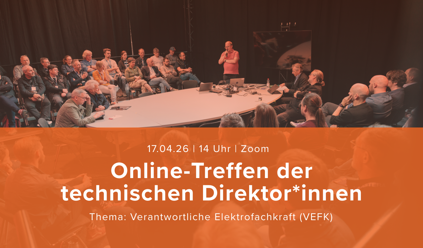 Online-Austausch der AG Technische Direktor*innen – Thema: Verantwortliche Elektrofachkraft (VEFK) Apr. 17 Virtual Veranstaltung 14:00 - 15:00 Online-Austausch der AG Technische Direktor*innen – Thema: Verantwortliche Elektrofachkraft (VEFK) Reservierung Jetzt Kostenlos